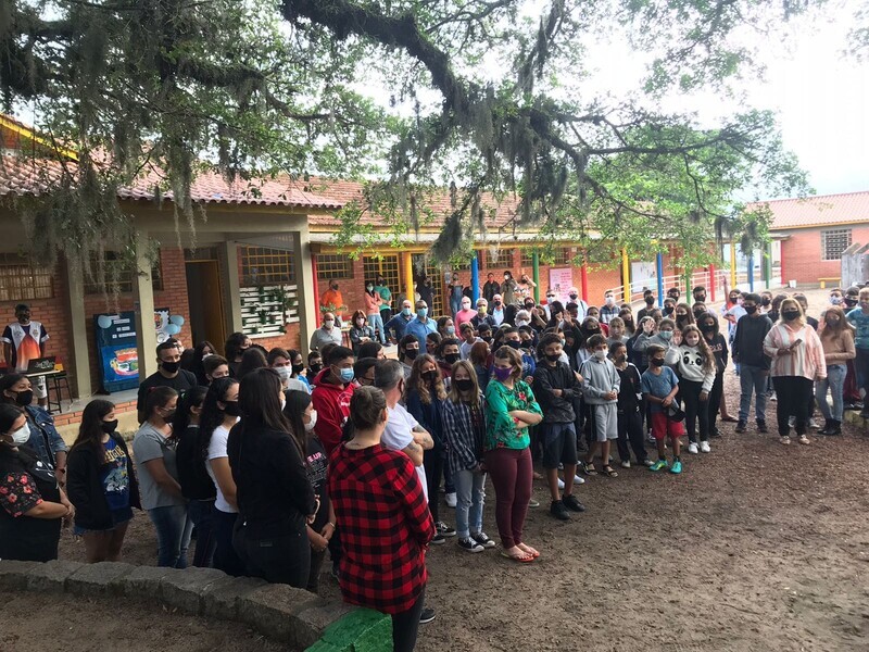 Após a Solenidade, os integrantes da ASSOPHIA exibiram, aos alunos do 5ªano, o curta-metragem "Pintando ARAMBARÉ" e brindaram com a distribuição da revista Arachanito conta história.