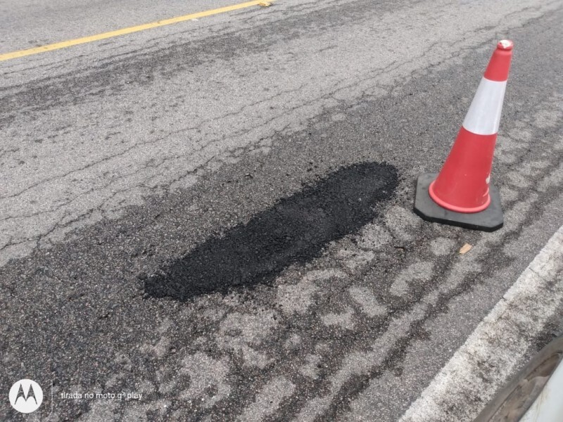 Para facilitar o deslocamento e realizar a manutenção do asfalto, os buracos abertos na rodovia estão sendo tapados.