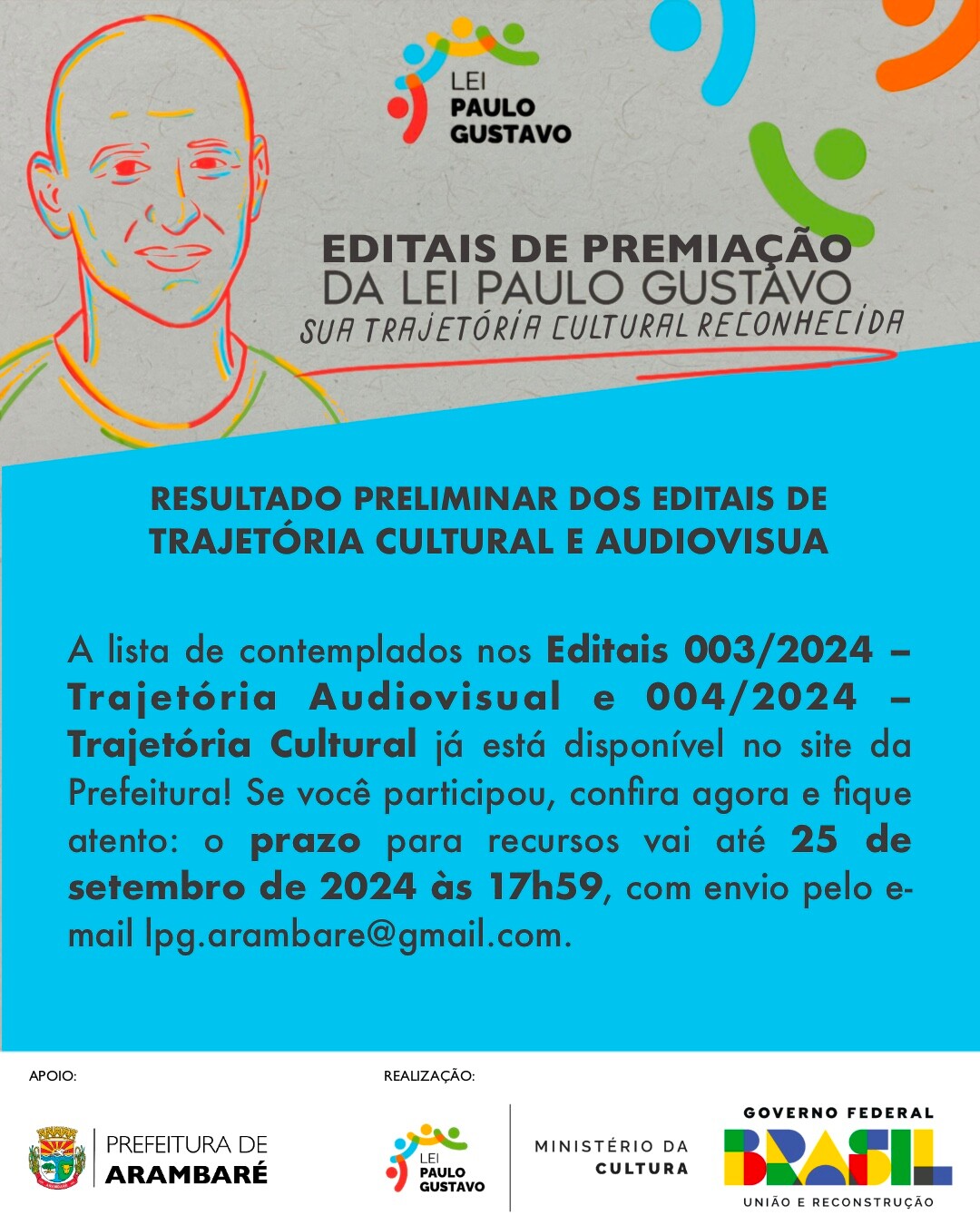 📅 Prazo recursal: Até 25 de setembro de 2024, às 17h59, através do e-mail [email protected], com o assunto "Recurso - Nome do Proponente".